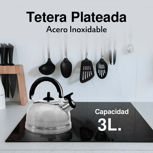 Tetera para té plateada 3 litros