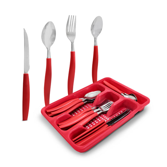 Juego de Cubiertos Con Portacubiertos Rojo