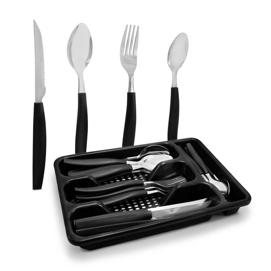 Juego de Cubiertos Con Portacubiertos Negro